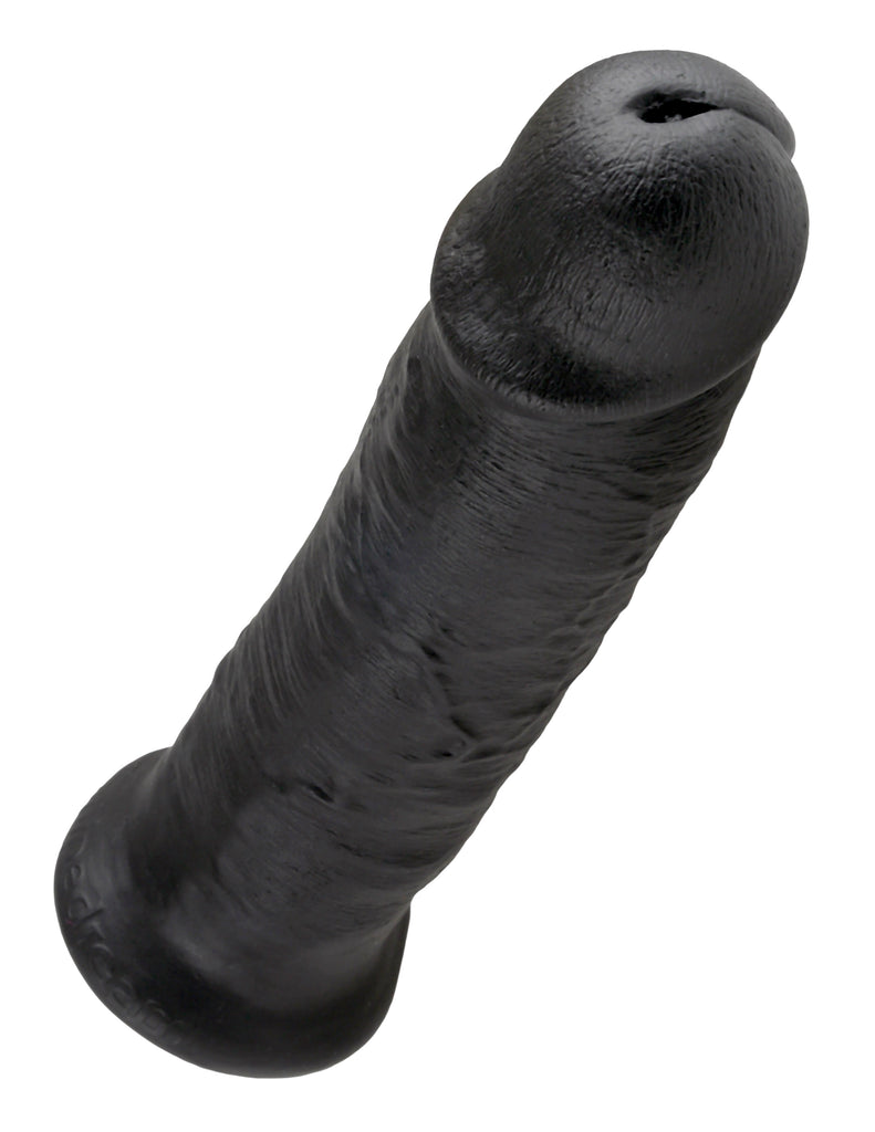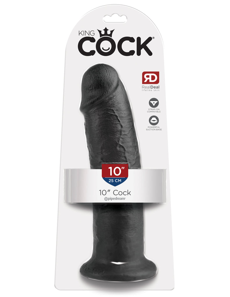 King Cock 10 inches Cock Dildo Real Deal RD. Do you want your first dildo to look and feel just like the rock hard stud you have always fantasized about? Stop dreaming and get down with the King! Every vein, every shaft, and every head is carefully hand crafted with exquisite detail to give you the most realistic experience ever imagined. The powerful suction cup base sticks to nearly any flat surface and makes every dildo harness compatible. Enjoy every master piece with confidence. Length 10.5 inches, width 2.5 inches, girth 7.75 inches, insertable length 9 inches. Weight 17.5 ounces.