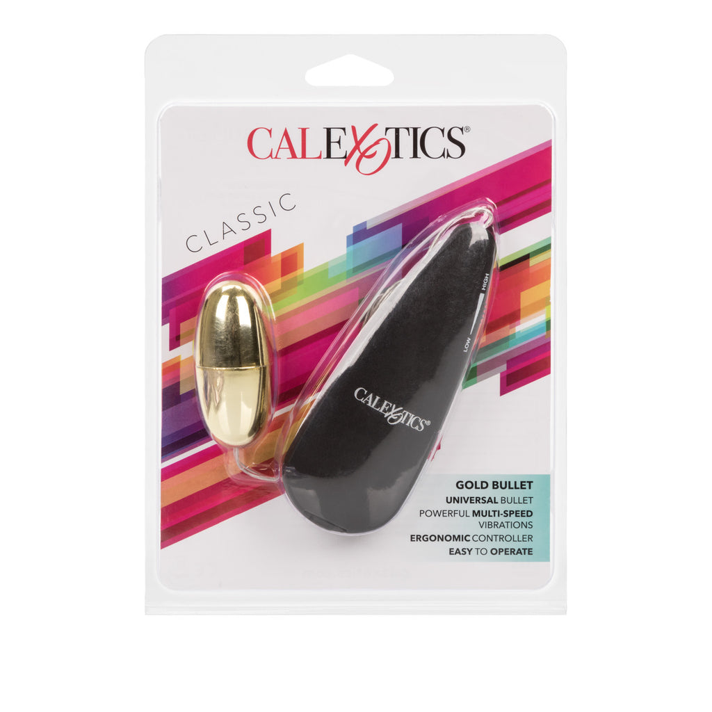 Golden Bullet Vibrator from California Exotic Novelties.Customize and adapt your intimate pleasure to suit, with the versatile Golden Bullet. The petite and powerful multi-speed Massager boasts intense vibrating action and is the perfect playtime companion for intimate exploration. Use the discreet travel sized Vibrator for erotic solo fun, and for exotic, sensual couple’s play. The sleek and compact stimulator is made from gold plated ABS Plastic, and is attached to a teardrop shaped, hand held ABS Plastic Controller with easy slide controls. The multi-speed Bullet Vibrator measures 2.2 inches by 1 inch and delivers intense stimulation sensations for ultimate internal and external satisfaction. 2 AAA batteries are required to power up the unforgettable tingles. The stimulator is easy to use and great for customizing your seductive experiences. The Bullet Vibrator packs intensely powerful vibrations, and is suitable for first time and experienced users. Use the love Bullet Vibrator to tease, please and satisfy your desires. Pop the bullet inside a pleasure product to maximize playtime fun, or use it for direct sweet spots and erogenous zones stimulation. To heighten the orgasmic vibrations, always use a quality water based personal lubricant with this adult toy. Clean the bullet with a toy cleaner spray before and after each use. Give your climax the Golden touch! Use it wherever you desire with the removable Golden Bullet. Put in in your favorite pleasure device or use on your favorite erogenous zone and enjoy the vibrations only Swedish Erotica can deliver. Vibrator warning this Bullet is highly explosive. You will be amazed at the power contained within the compact bullet vibrator. It may be teeny, tiny, but this versatile personal massager provides sexual stimulation that is guaranteed to get you off. Vibrating sex toy requires 2 AAA batteries, not included. Do not leave batteries in the vibrator between uses. Safe and pure for body and pleasure. Made using phthalate free, non-toxic materials ABS Plastic Power Controller. ABS Plastic with Gold Plating. Bullet vibrator measures 2.2 inches long by 1 inch wide. Bulk weight: 2.2 ounces. Always clean before and after use. 1 year warranty. Golden Bullet Vibrator is a registered trademark for California Exotic Novelties. Sex toys and sexual wellness. Categories: Vibrators, Bullets, Eggs, Sex Toys for Couples, Men, Women, Vibrating Bullets and Eggs. 2023.