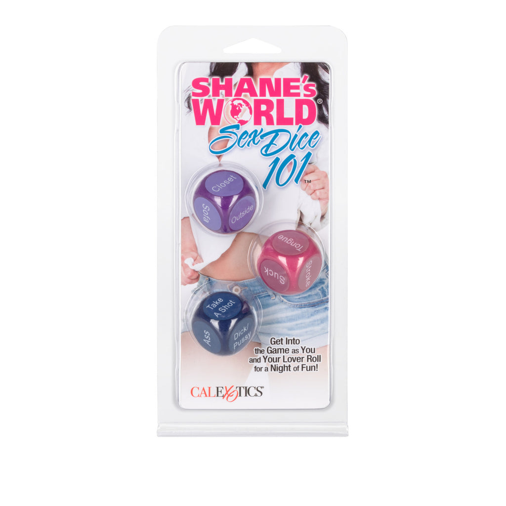 Shane's World Sex Dice 101 from California Exotic Novelties. Roll your way to a night of sexy, playful fun with the Shane’s World Sex Dice 101. Play with your partner should be fun, and turning it into a game can be just what the doctor ordered to spice things up and create light hearted, sensual play with your lover. There are three dice included: pink, purple, and blue. Roll one at a time or get creative and combine all three. If you have been cycling through the same routine for a while or just enjoy the rush of being told what to do, this dice will drive you wild. The pink dice offers erotic actions like kiss, stroke and tongue. The purple will have you quivering with excitement as you explore new locations, from the sofa to the closet to exhibitionist destinations outside. You will love the rush of excitement as new locations challenge you to break out of the bedroom comfort zone. Showers, sofas, and closets are just a few of the places you might explore. The blue dice gives you sensual places on your partner’s body to play: private parts, neck and toes are all on the table. You and your partner might just discover uncharted territories of erogenous zones that will have you shivering with desire in no time. Revel in your partner’s irresistible reactions as you stroke their neck, kiss their toes, or tongue their intimate areas. The sky is the limit withthese dice. Get into the game and roll for a night of sexy fun! Shane's World is the leader in reality adult entertainment. With years of experience producing college reality porn, this irreverent company has created a stir wherever they show up with camera is rolling! All of their toys have been endorsed by the ladies of Shane's World! Shane's World Sex Dice 101 Game Take a class together! Roll the 3 dice for a night of sexy fun. Categories: More Fun, Gag Gifts and Party Favors. Shane's World Sex Dice 101 Game is a registered trademark for California Exotic Novelties. Restricted, Amazon Restricted. Categories: Party Games, Gifts, Supplies, Books, Adult Games, Music, Adult Party Games, Holiday item, Xmas item, Sensual Kits. 2023.